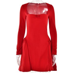 New solid color tube top square collar sexy tube top slim high waist A-line skirt